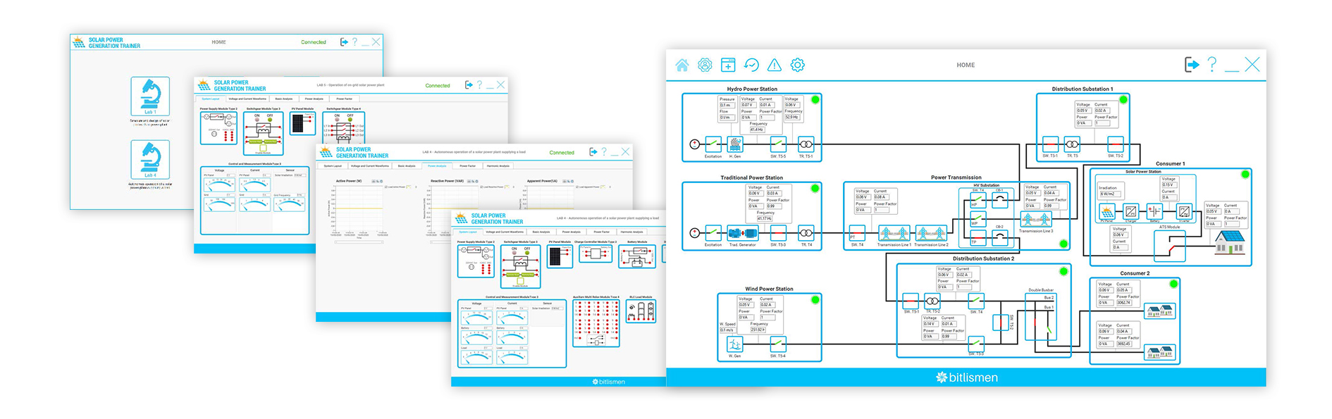 能源实训中心解决方案中包含一系列与能源相关的实训平台,这些实训平台软件基于NI LabVIEW软件开发,硬件基于NI RIO硬件完成数据采集、信号分析、检测和控制,旨在为客户提供一个可以覆盖新能源和传统能源、开放灵活、可重配置和可编程的实训解决方案。